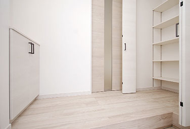 下駄箱+シューズクローク+収納をレイアウトした広々玄関ホール。