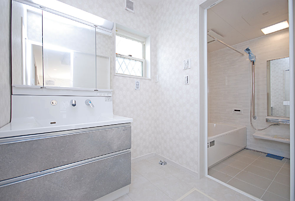 広々とした、洗面エリアは清涼感あるホワイト基調。