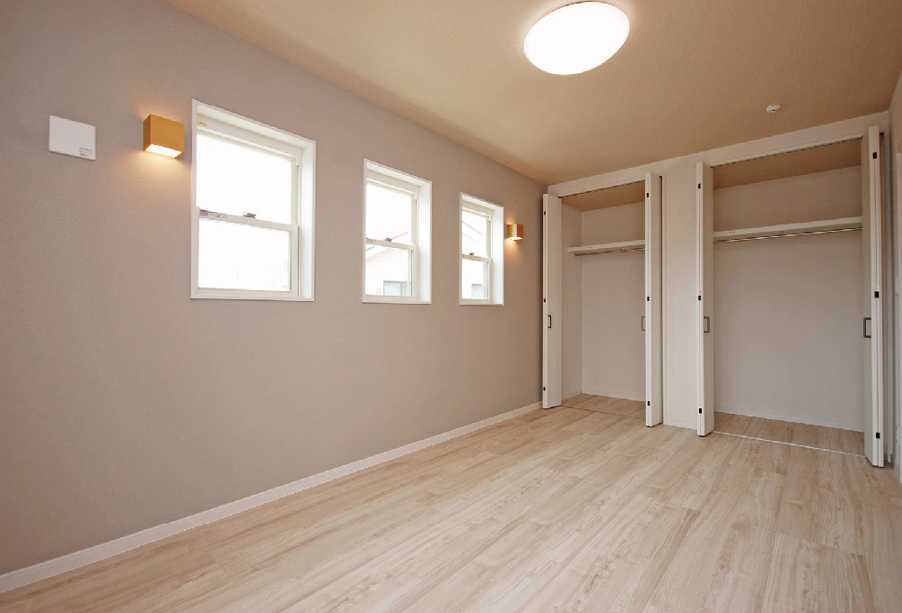連続する上げ下げ窓が優しい雰囲気を演出する主寝室。
