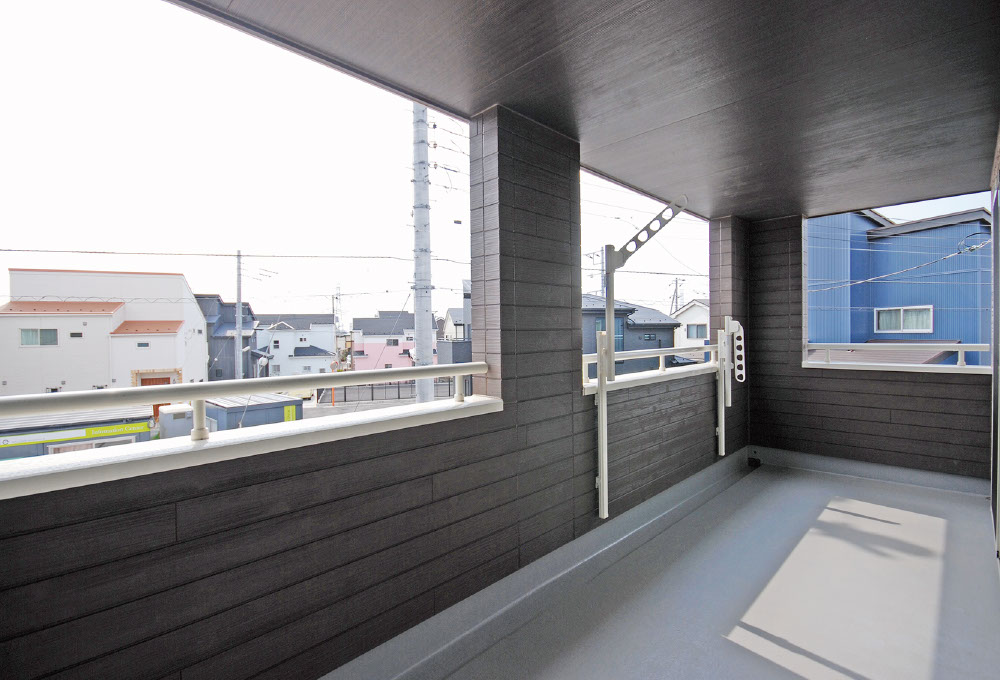インナータイプのバルコニーはBBQも楽しめるダイナミックな空間。