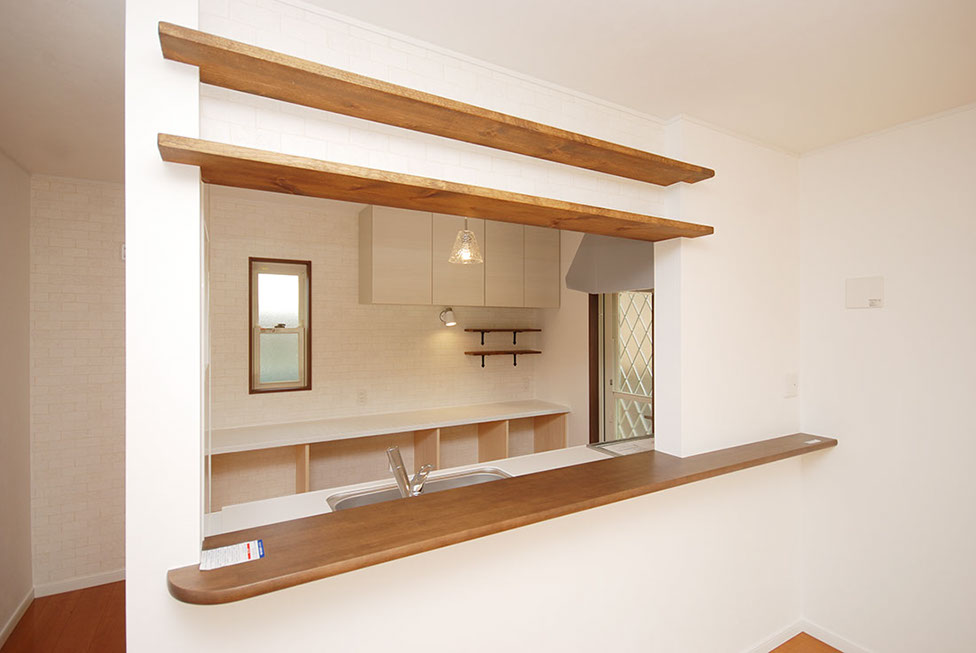 キッチンは、開放的でありながら来客時のプライバシーにも配慮した設計