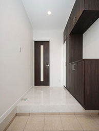 天然石調の床とモダンな建具で洗練の玄関ホール