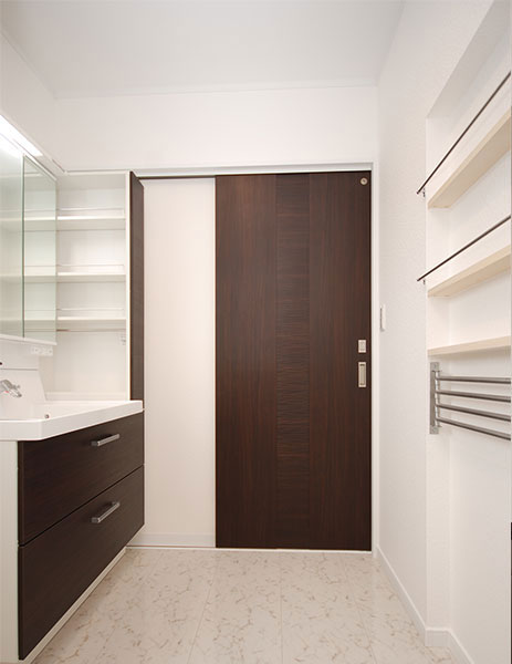 シャープさと清潔感がある洗面室
