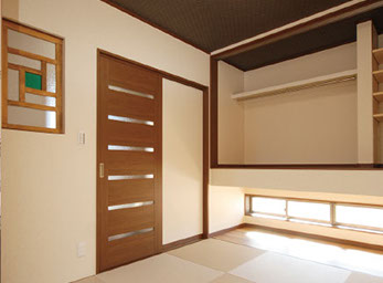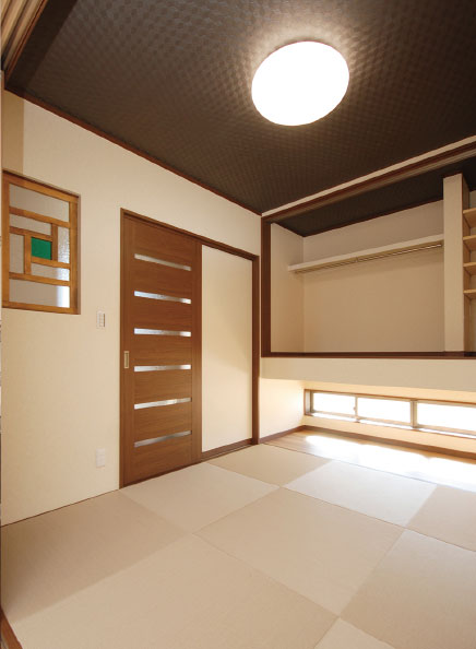 琉球畳の和室はハンドメイドの小窓がアクセント