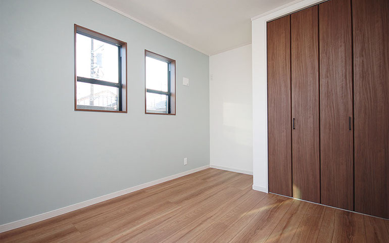 上げ下げ窓にマッチするナチュラルカラーのアクセントウォール。