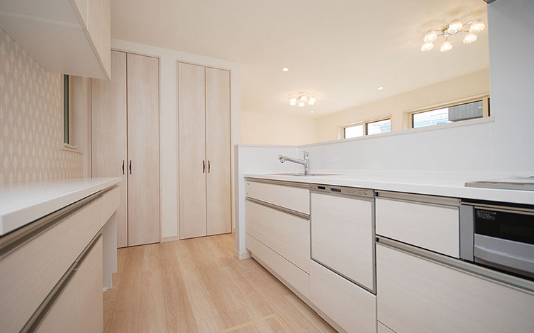 キッチンエリアには大容量のパントリーを2箇所レイアウト。