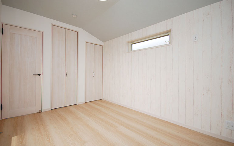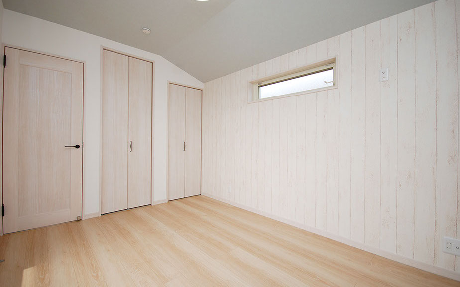 白樺風のクロスと淡いカラーのクロスを組み合わせたナチュラルな雰囲気の空間。