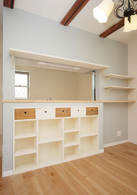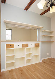 キッチンのダイニング側にはシービスケット監修によるオリジナル造作収納