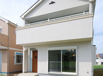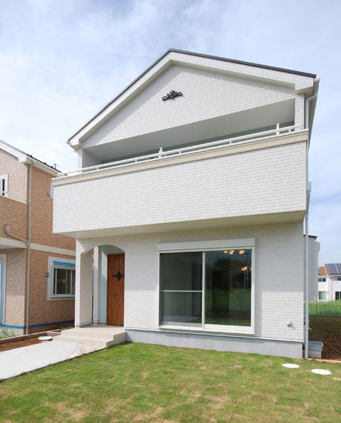 青空と芝の緑と調和する白を基調にした外観