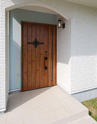 アイアン装飾が施された重厚な玄関ドア
