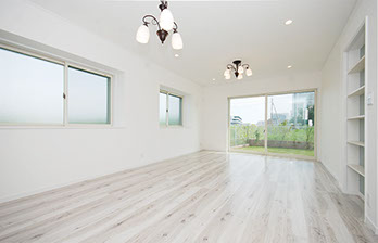 木目が優しいフローリング床のリビングにはお庭の風景を楽しむワイドサッシ