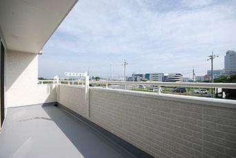 奥行きたっぷりワイドスパンのバルコニーからは遮る建物も無く開放的な眺望